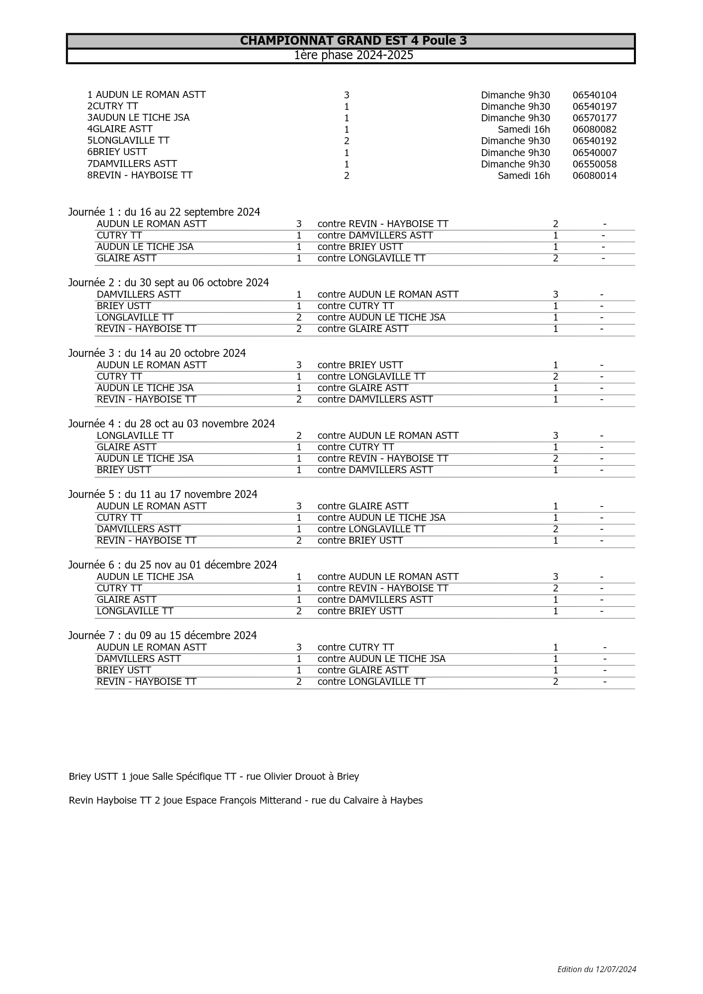 les calendriers de rencontres viennent de tomber. Pour la GE 4, GE 5 et nos…